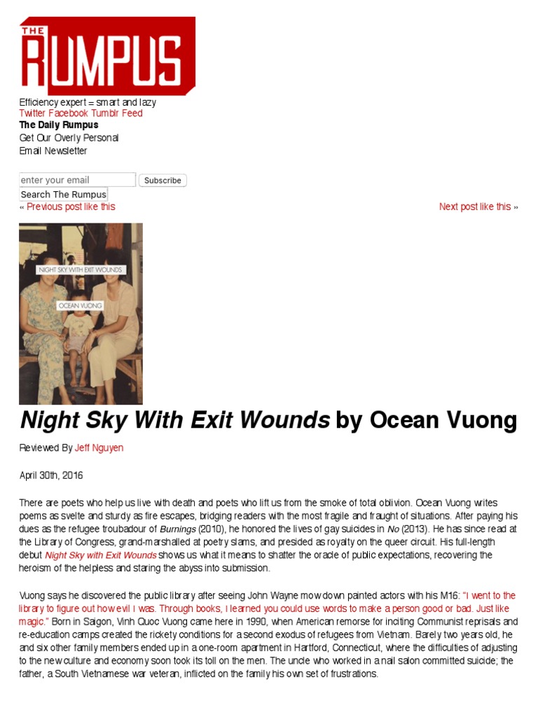 Night Sky With Exit Wounds By Ocean Vuong Review Youtube